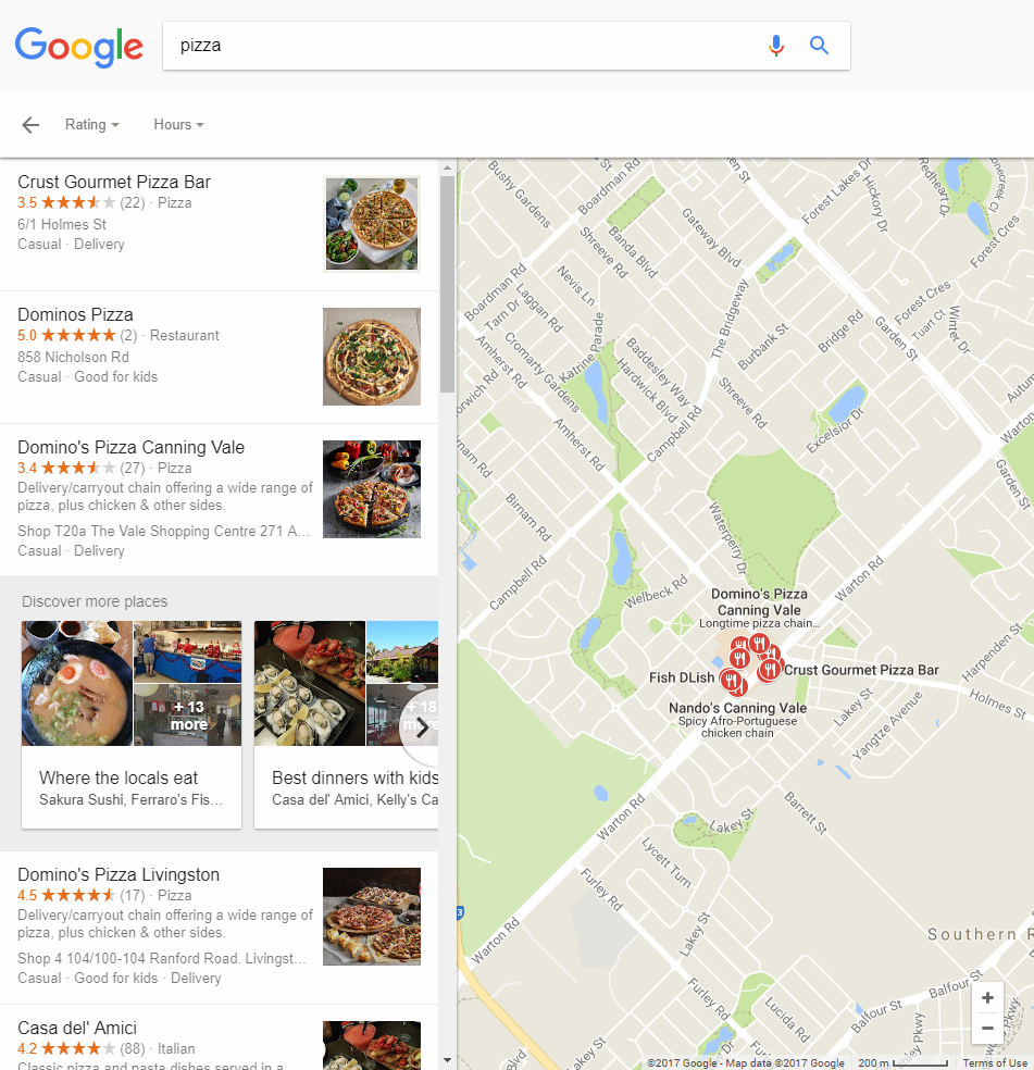 Google not only dominates the search space but likely dominates online maps as well. Plenty of consumers use Google Maps to search for local businesses and services. Google Maps works similarly to how their search works. When people are searching for pizza, your business will be shown to them based on how close they are to you.